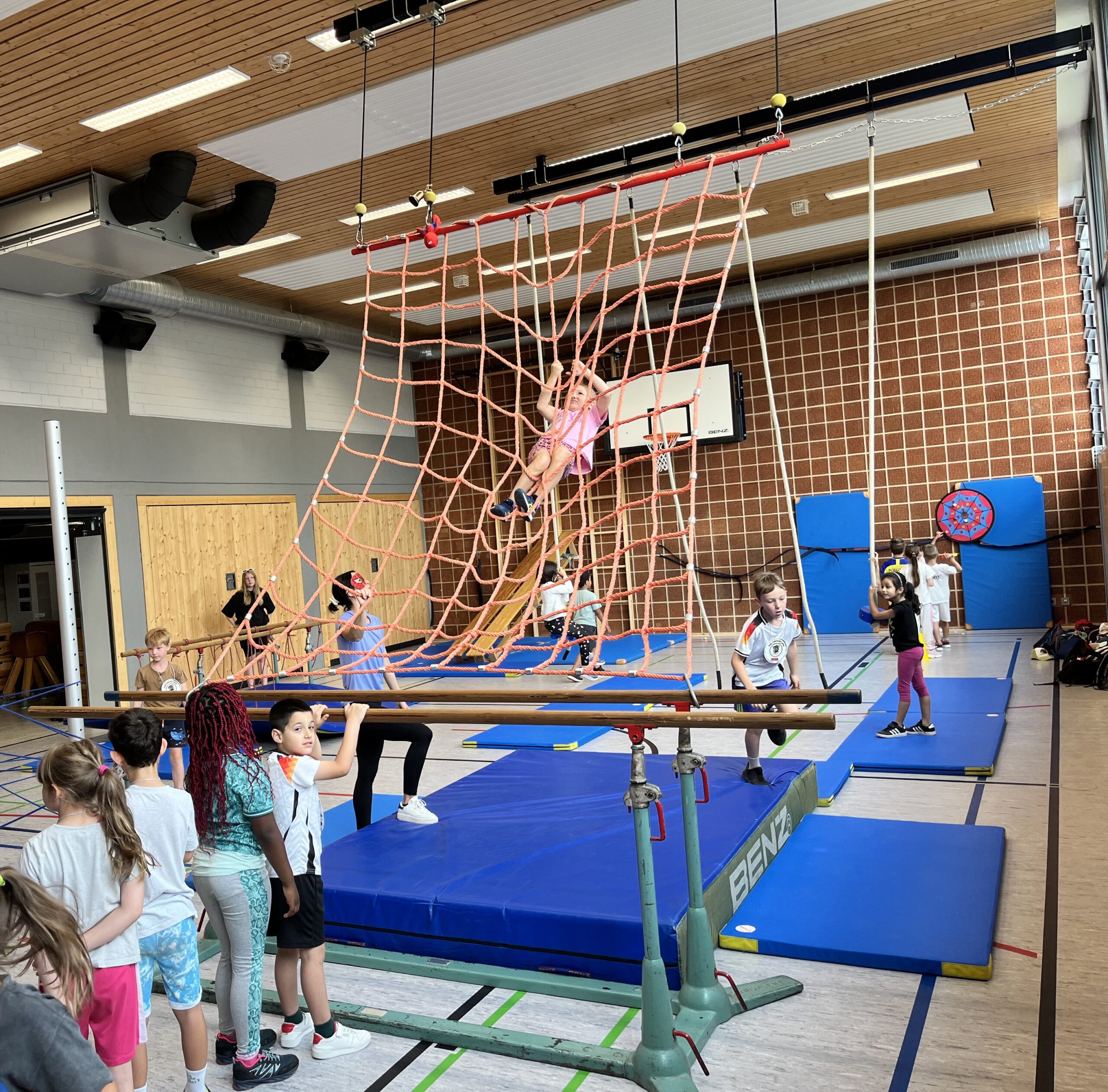 Mit insgesamt 13 Klassen, einer Vorbereitungsklasse (VKL) und der Grundschulförderklasse (GSFÖ) nahmen rund 370 kleine Heldinnen und Helden an zwei sportlichen Tagen voller Action, Teamgeist und Kreativität teil.